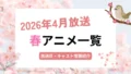 4月春アニメ 【2026年春アニメ一覧】4月放送開始の注目の新作アニメをご紹介&公式リンクまとめ