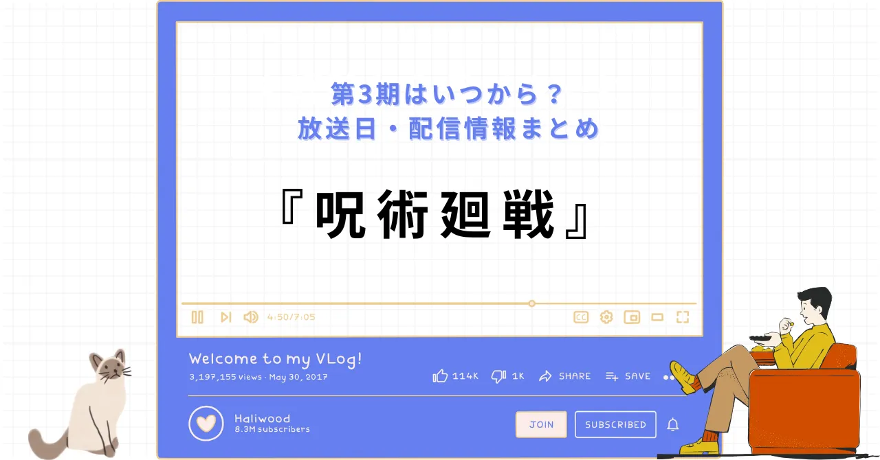 本記事では、3期が原作のどこまでを描くのか、死滅回游編のあらすじ、さらに放送日や動画配信情報(アマプラ・ネトフリなど)をまとめて紹介しました。