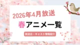 👉その他、2026年4月春放送開始のアニメ一覧については、こちらの記事から